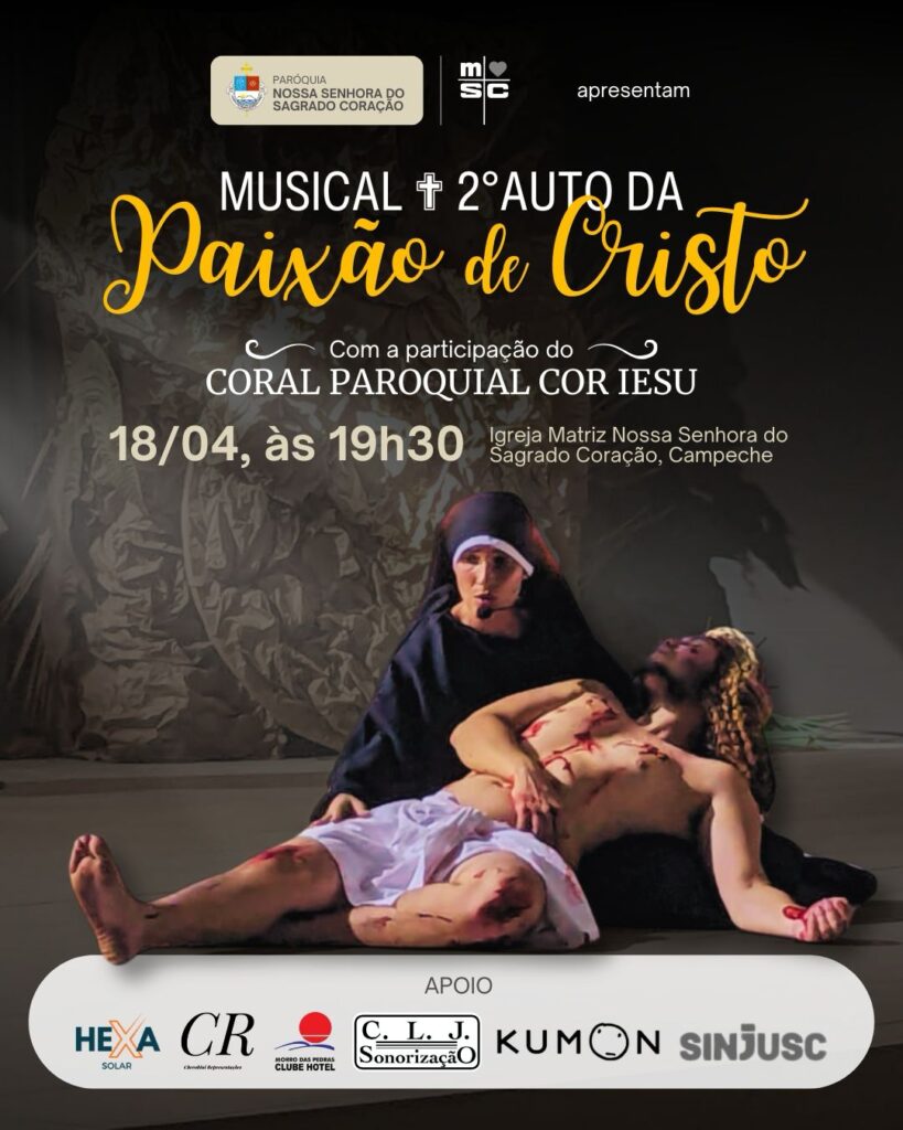 Está chegando o dia! Na Sexta-Feira Santa, dia 18/04, às 19h30, a Igreja Matriz Nossa Senhora do Sagrado Coração recebe a apresentação do 2º Auto da Paixão de Cristo.